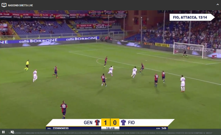 In questo caso la partita simulata è fra Genoa e Fiorentina. Come ricordato in precedenza, vengono uniti vari spezzoni di partite del passato. Per cui il risultato finale del match simulato non è in alcun modo legato o influenzato dalle partite vere. Solo l’algoritmo decide come andrà a finire.